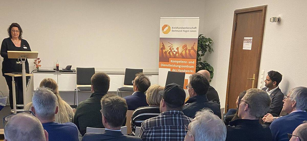 Jeannette Peters machte deutlich, dass Nachfolge nicht das Ende einer unternehmerischen Ära ist, sondern der Beginn einer neuen. Sie zeigte auf, welche emotionalen Aspekte häufig übersehen werden und warum gerade im Handwerk klare Kommunikation, frühzeitige Planung und ein gemeinsames Verständnis von Werten entscheidend sind. Nachfolgerinnen und Nachfolger brauchen nicht nur fachliches Können, sondern auch den Mut, Verantwortung zu übernehmen und den Betrieb mit eigener Handschrift weiterzuentwickeln.